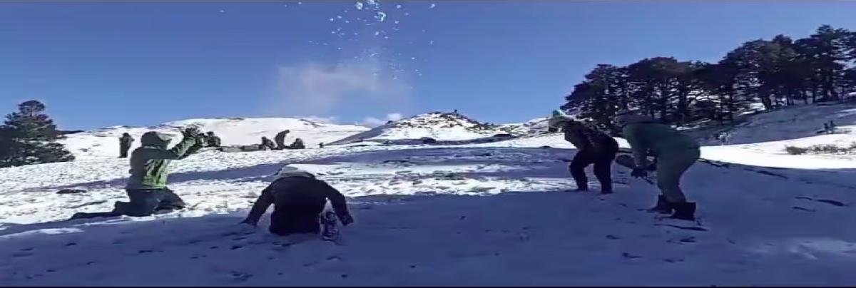 बर्फबारी के बाद औली में कड़ाके की ठंड, कृत्रिम झील पूरी तरह जमी